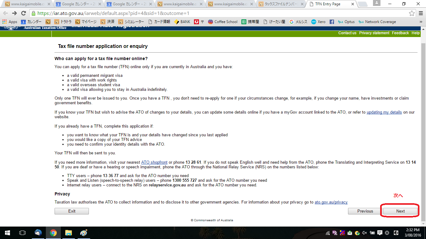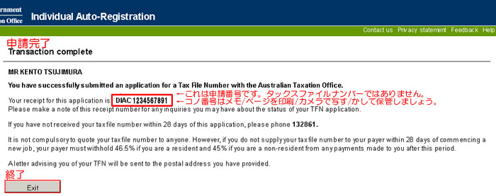 ■トラトラではタックスファイルナンバー取得のアドバイスをしていますが、取得できない、エラーになるといった場合直接政府の税務局へお問い合わせください。当社では対応できかねます。お問い合わせは、www.ato.gov.auから。