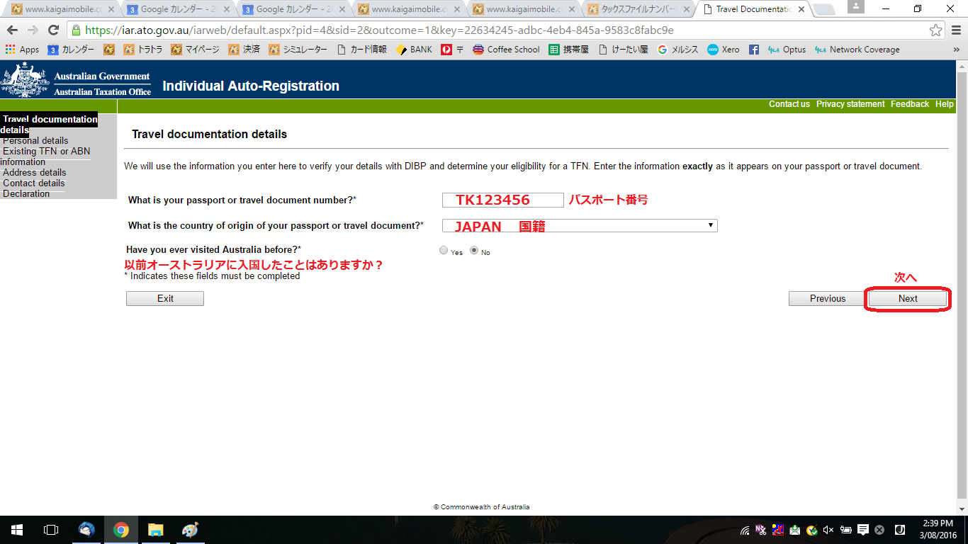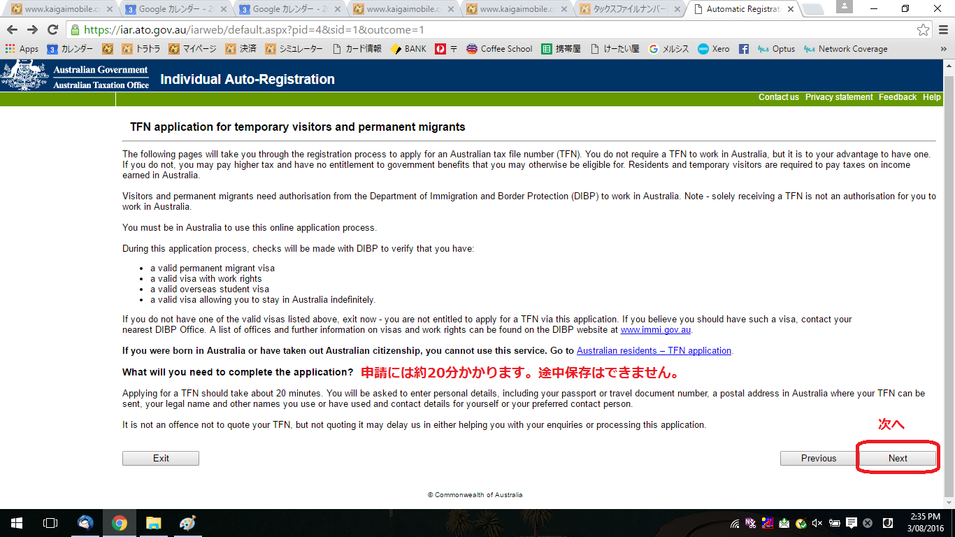 ■到着した日は、オーストラリアに入国していることがアップデートされていないことが多く申請できないことがあります。翌日試してみてください。