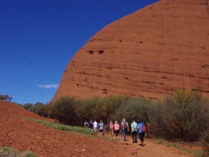 カタジュタ(風の谷)ツアーに出発!大迫力の岩のドームの間を縫ってウォルパ渓谷をトレッキング。ガイドさんが楽しい英語で歴史などを話してくれます。