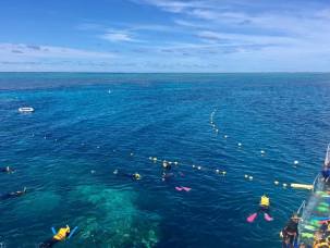 ポンツーン到着 ポンツーン内説明。シュノーケル/アクティビティーをお楽しみください