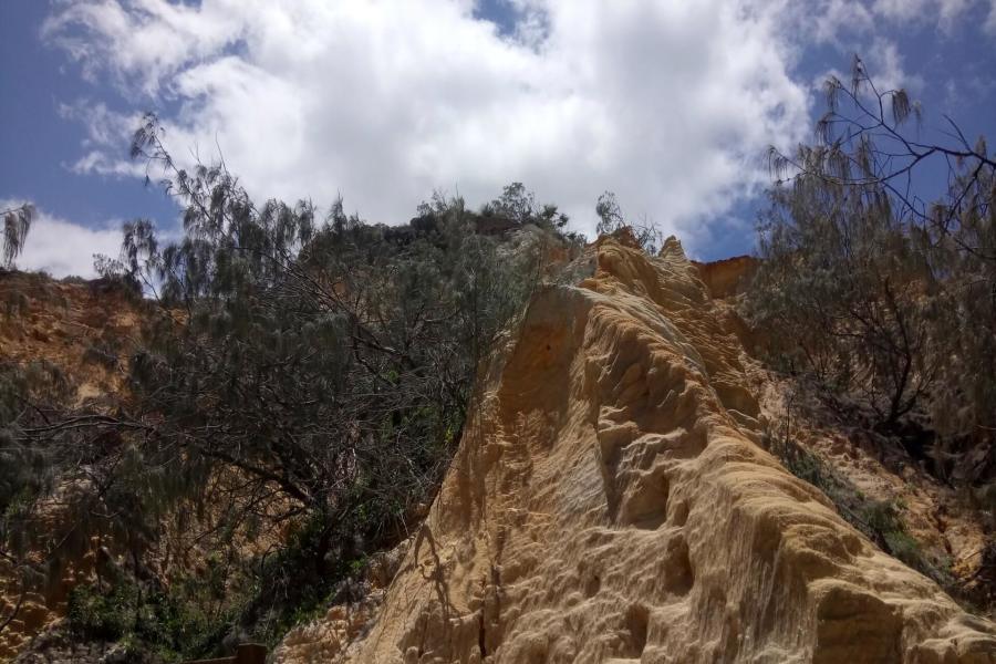 砂の島ならではの、砂の崖が、自然の力で黄色/茶色のような、独特の色に染まっています。