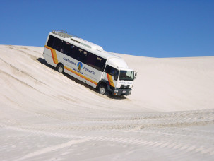 西オーストラリア最大級の砂丘で有名なLancelinに到着。砂丘の上を4WDのバスで爆走します。
