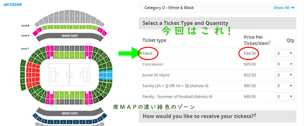 行先 ANZスタジアム