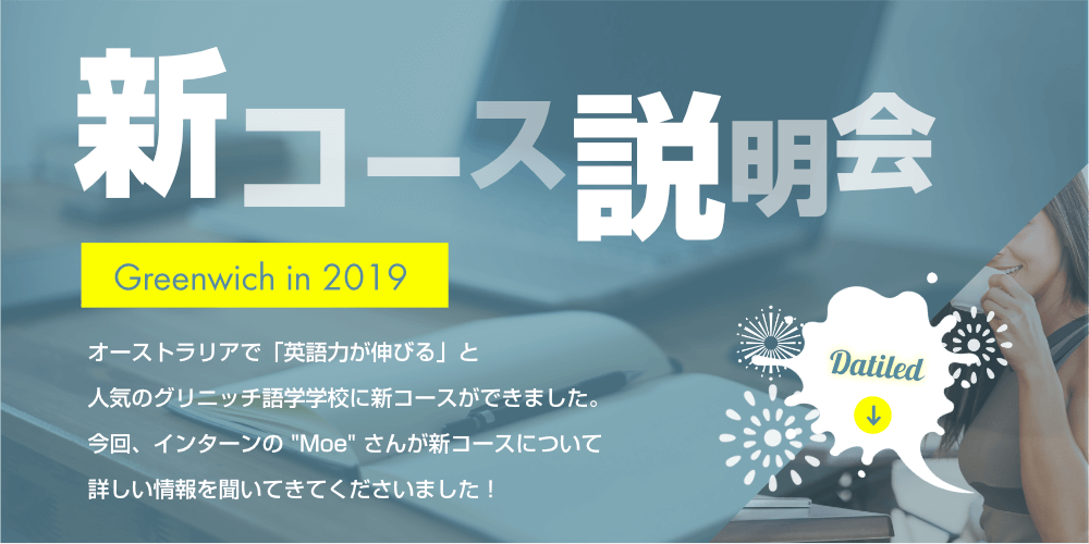 グリニッチさんで新コースの説明会があるとということで 今回インターンのMoeさんに「オフィスの外で勉強してきましょう!」という考えのもと オーストラリアの語学学校がどういったものなのか、学んでいただきたいと思い参加していただきました! [get_sc […]