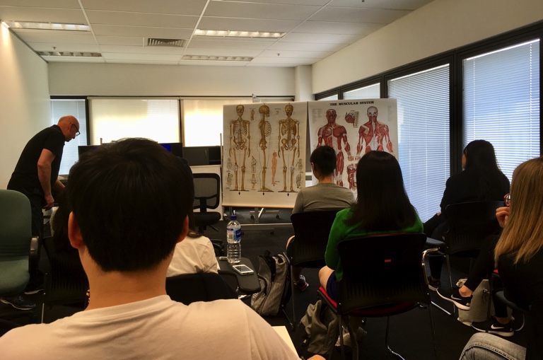 公園で授業 この日の午後は、学校の近くのハイドパークに移動。 きもちいい公園の芝生にタオルを広げ寝転がり、生徒それぞれが自分の体の柔軟性や可動範囲を確認してみる、という授業です。 私は体がカタい事を自覚していましたが、場所によっては意外と柔らかい部分 […]