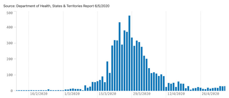 早い時期に施行されたロックダウンが功を奏し、ここ数日間の新規感染者数は少人数で抑えられているオーストラリアです。