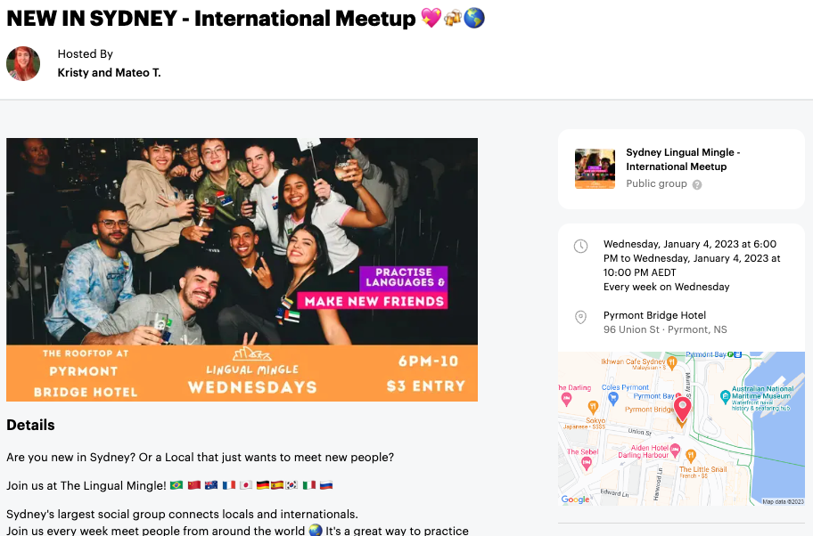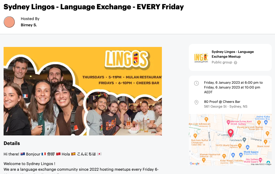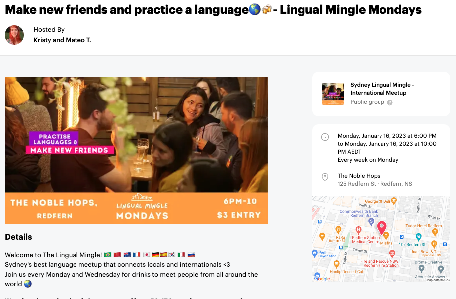 リンク:Sydney Lingos – Language Exchange – EVERY Friday