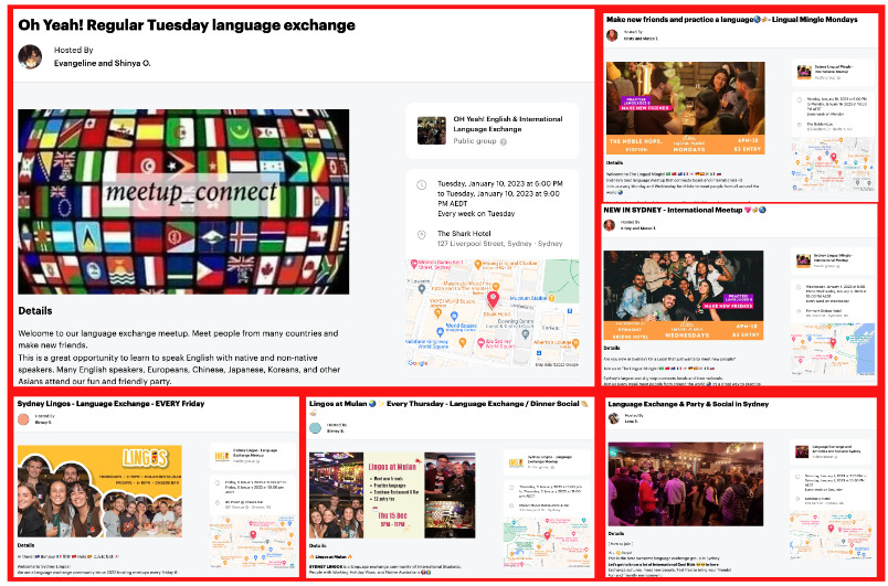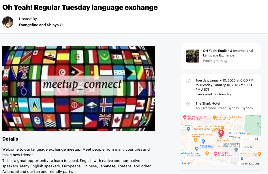 シドニーでは毎日どこかでランゲージエクスチェンジを開催してます。meetupで探していく方法が一番簡単です。