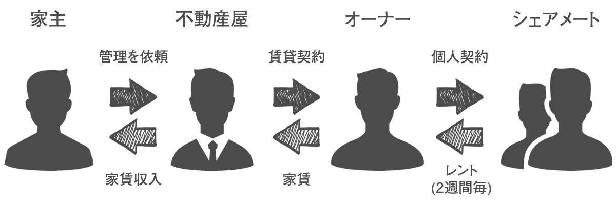 シェーアーハウスに入居する場合、オーナーさんとの契約になります。これは個人との契約になります。従ってあとでいったいわない。金額が違うなどのトラブルが大変多いです。トラブルになっても警察は対応してくれません。