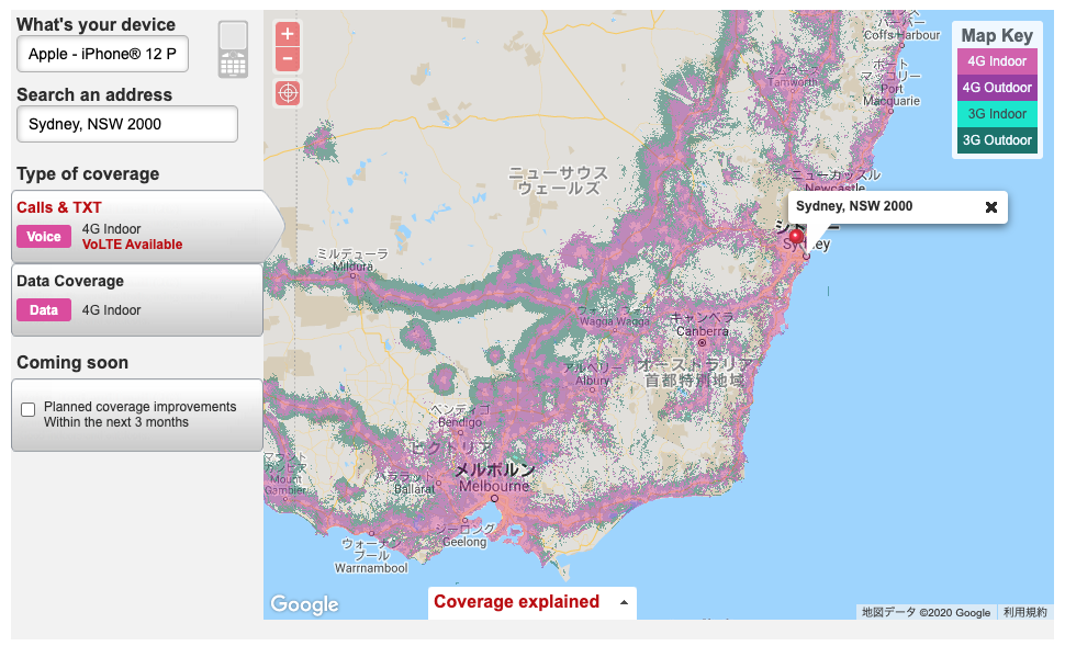 オーストラリアの携帯会社別に電波状況を確認