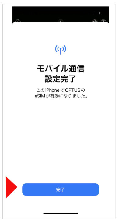 完了ボタンをおして、eSIMの設定が終了します。