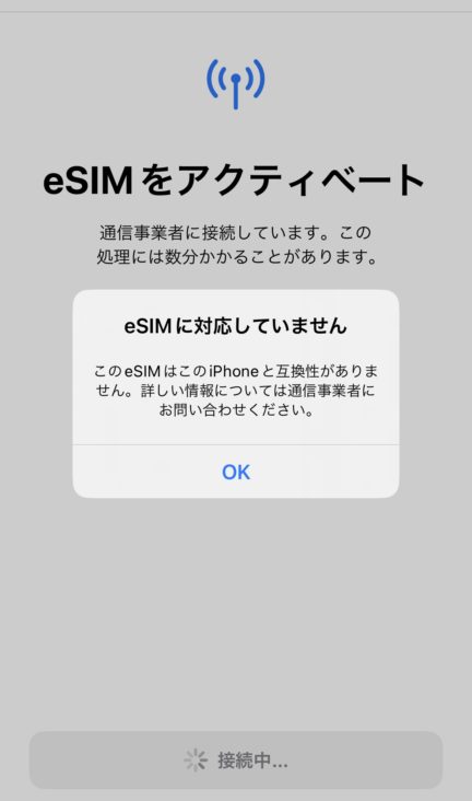 上記の方法で「eSIMは追加できません」とエラーがでても、eSIMのアクティベートが通常可能になります。