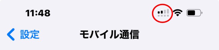 電波の受信については、4Gや5Gが表示されてばOKです。