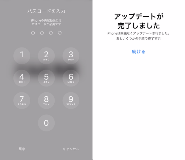 表示に従って進んでいきましょう。パスコードを入力して
