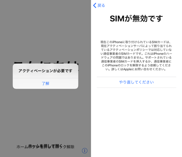 必ずWi-Fi環境があるところで行ってください。まずは本体にSIMカードを差し込み、iPhoneを起動させます。起動すると【アクティベーションが必要です】と出てきます。