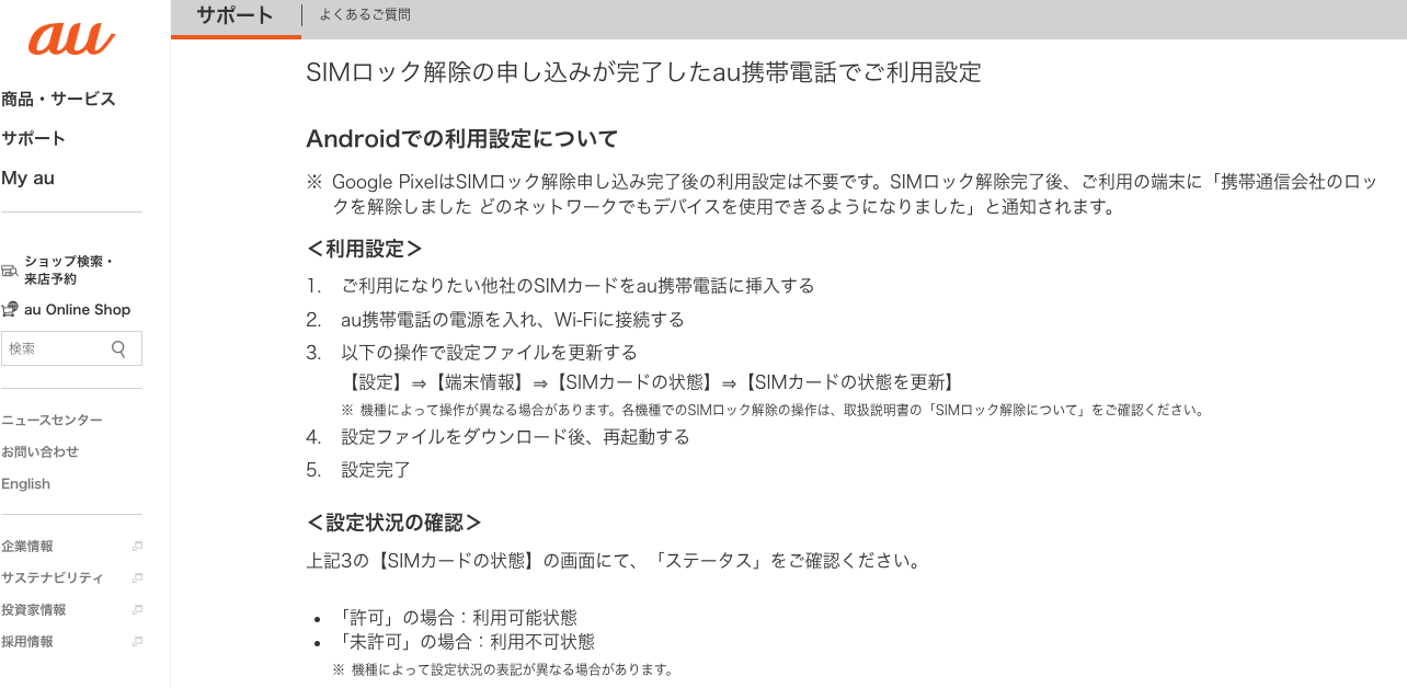 日本でSIM解除したけど、アンドロイドのスマホが使えない。。。という方は、「SIMカードの状態を更新」をお試しください。「SIMカードの状態を更新」作業をしないと、SIM解除が完了しません。「SIMカードの状態を更新」する作業は、オーストラリアに到着してから行います。