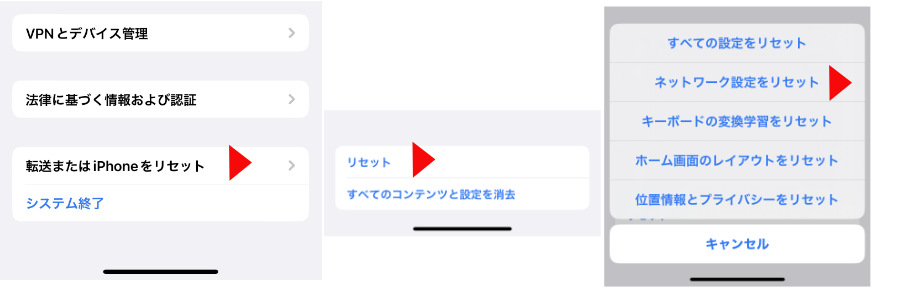 - ネットワーク設定のリセット後は、家や学校で再度WIFIのパスワードを再入力する必要があります。