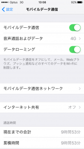 まずは、iPhoneでモバイルデータ通信ができているか確認