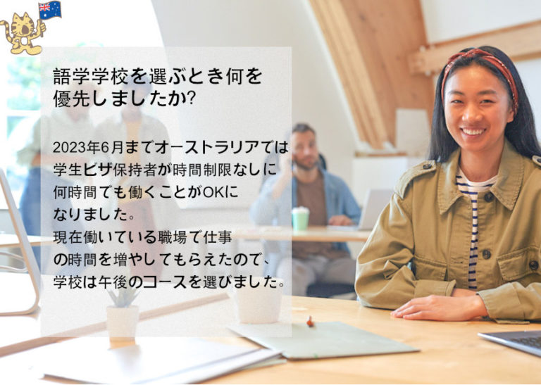 こんにちわ。トラトラはシドニーのオフィスで留学エージェントを営む、オーストラリア現地留学エージェントです。先日語学学校のマーケティングの方から、午後クラスのキャンペーンを紹介されましたので、共有します。 午前の授業料$340/週 午後の授業料$225 […]