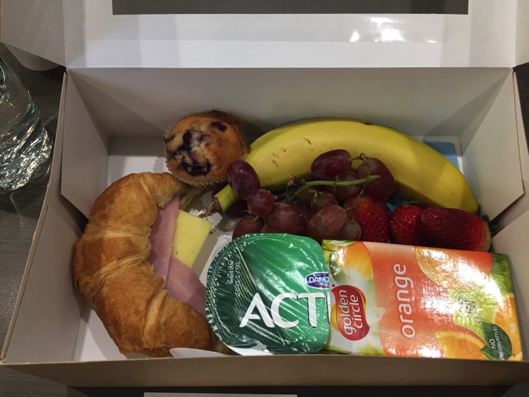 朝食は果物とクロワッサンやマフィン、ヨーグルト