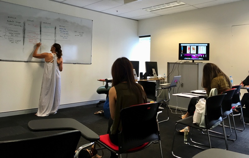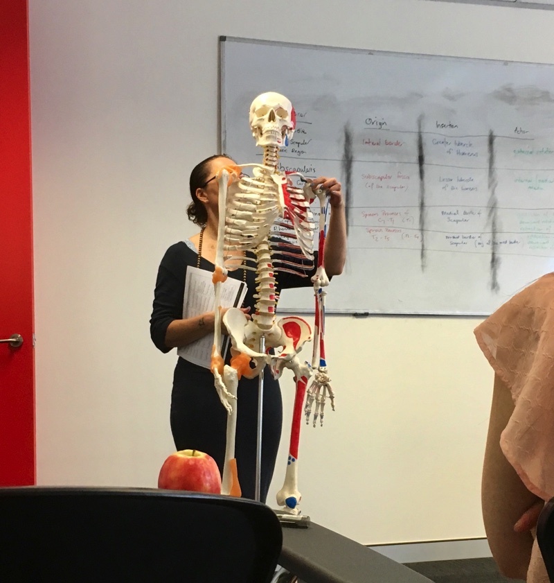 レクチャーでは主な筋肉たちの名称や、その筋肉がどこに位置しどのように動くか等を教えて頂きました。