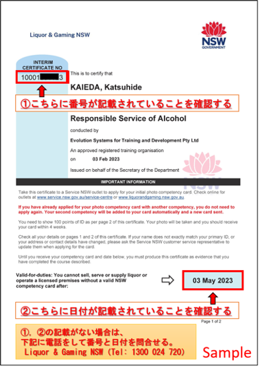 RSAライセンスカード発行に伴い、写真は、Certificateが届き次第できるだけ早めにService NSWへ撮影してもらいに行きましょう(Certificateの有効期限が90日間の為)。その際、パスポートや銀行のカードなど、証明書類が100点以上となるよう持っていく必要がありますのでご注意ください。ライセンスカード発行に伴う手数料等はありせんので御安心ください。