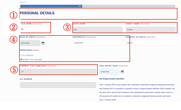 ① TITLE NAME/GIVEN NAME/FAMILY NAME