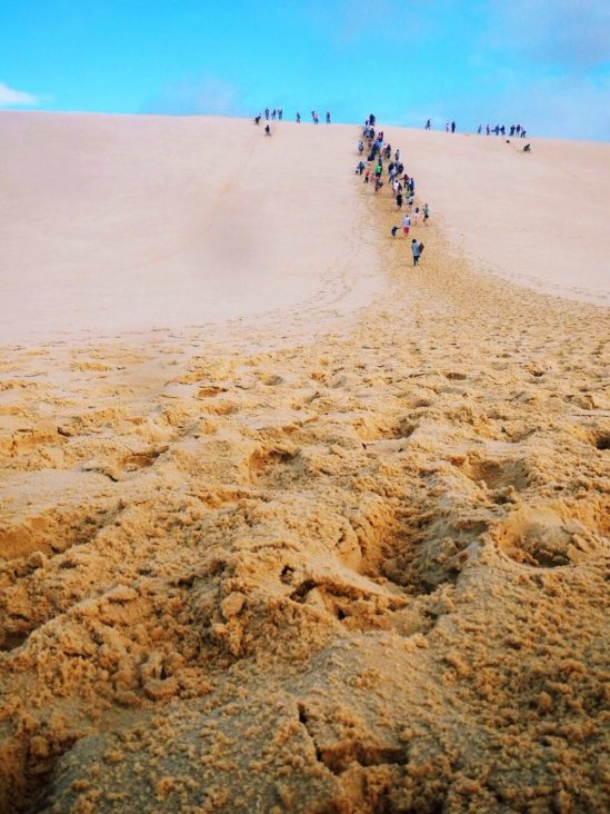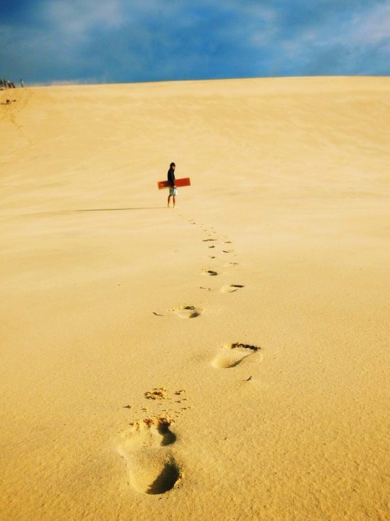 ボードを持って砂丘の上まで上がり滑りおりるのですが、これがスリルと迫力満点で、砂丘の上からの景色は絶景なのでとにかく最高です!