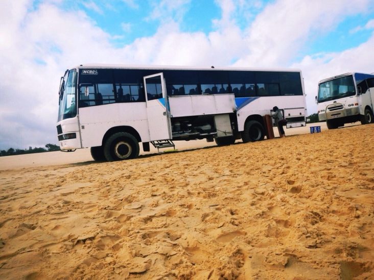 サンドボーディングは4WDで島を回り砂丘のあるスポットに向かいます!
