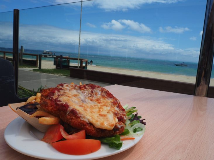 ランチはオーストラリアらしくチキンパルメジャーノとチップスを選びましたが、とても美味しくボリュームも満点!