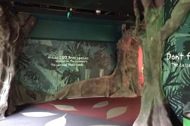 カーブを描く館内の作り、そして所々に遊びゴコロ溢れる仕掛けが満載!まるで森の中を探検しているかの様な気分です。場所によって鳥の鳴き声が聞けたり、映像による演出やビデオでの説明もあるので、参加しながら楽しんで学ぶ事ができます。