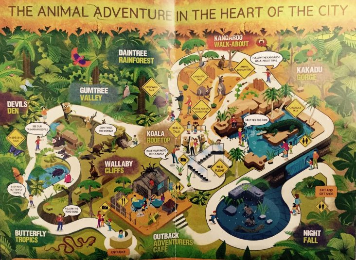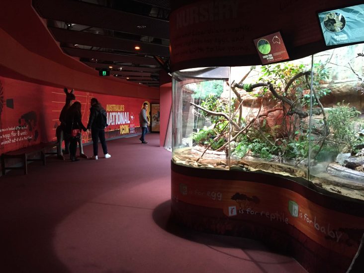 それぞれが特定の動物の生活やオーストラリア特有の環境、生態系の様子を再現することにより歩いて巡れる生息環境が実現。