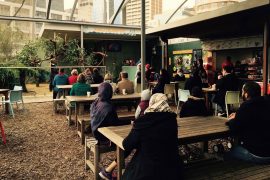 TALK TIMEの広場はカフェスペースも併設されています。疲れた頃なのでゆっくりご飯を食べながらTALKに耳を傾けるのも良いですね。注文は外から。