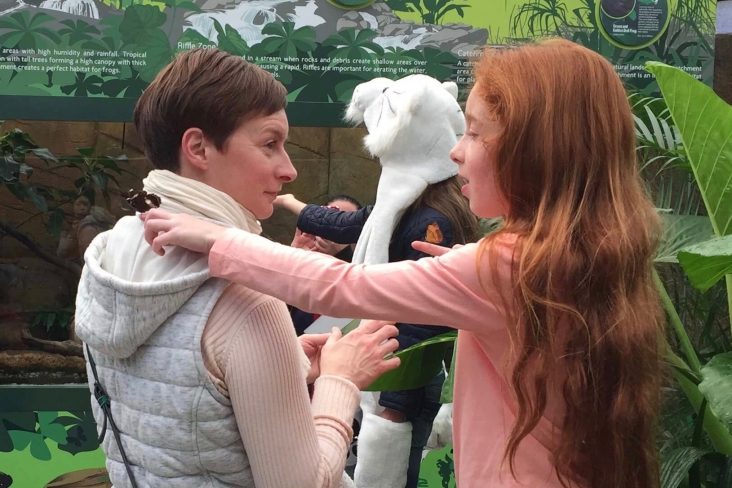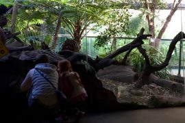 部屋に入るとモワ〜っと暖かい空気に包まれるこちらの部屋は温室になっていて、ワニ、カエル達に会えます。また蝶々が部屋の中を飛んでいて指を差し出すと止まってくれたりします。『ほらほら、ママの後ろに止まってるよ〜!』っという声が聞こえて来る微笑ましい光景です^^