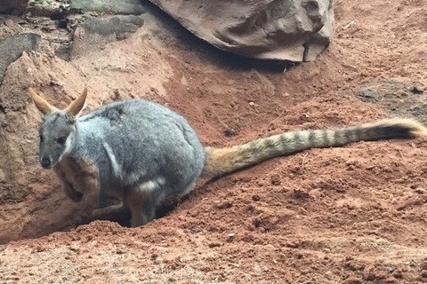 ユニークなシマオイワラビー達が、ワラビークリフスの岩場や砂場を駆け巡ります!カンガルー科に属する動物のうち、カンガルーよりも小さな種に対し、一般的に使われる名称であるそうです。カンガルーに比べ、後ろ足が小さく尾が短いのが特徴で基本的な習性はカンガルーと同じ。