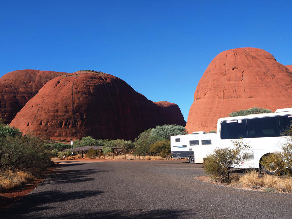 ウルルに到着後はツアースタッフが空港で迎えてくれますので、スタッフを見つけて各ツアーの大型バス(コーチ)に乗り込みます。